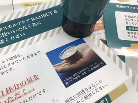 ランブットは「インドネシア伝承の成分が入ったヘアトリートメントを頭に塗りつける」という全く新しいタイプのヘアケアグッズ。有効成分は入っていないため、育毛剤というよりは”ヘアトリートメント”というカテゴリにはなってしまいますが、皮脂汚れを浮かして落とすホホバオイルや、ヘアケアにも使われるフルーツ「ノニ」が含まれており、週1度使うだけで髪にハリ・コシが出たような感じがします。他の育毛剤との併用もオススメです。